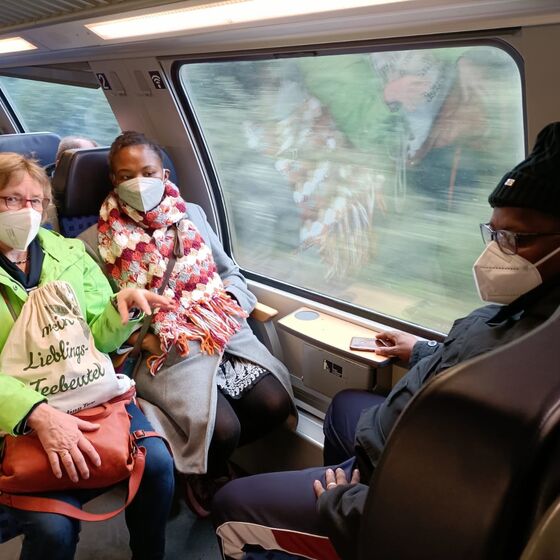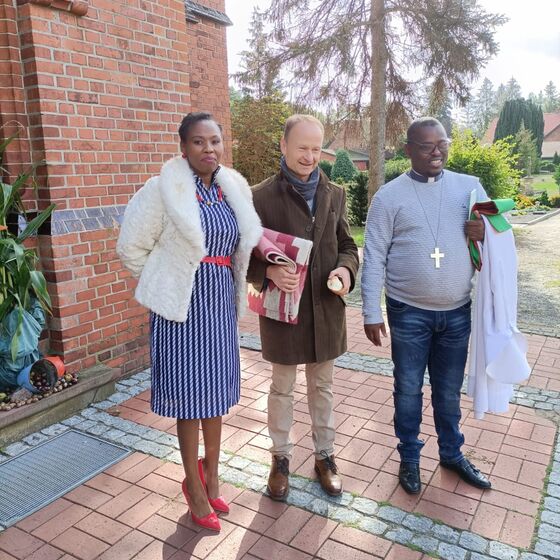 Nur fünf Minuten Verspätung hatte das Flugzeug, das uns unsere Gäste aus Shiyane brachte: Dean Caleb Ndlovu und seine Ehefrau Samukelesiwe. Fast genauso nach Plan verlief der Besuch. Fast, denn eine Gastgeberin musste kurzfristig absagen, weil ihr Mann an Corona erkrankte, aber zum Glück gab es noch ein freies Hotelzimmer in Verden.