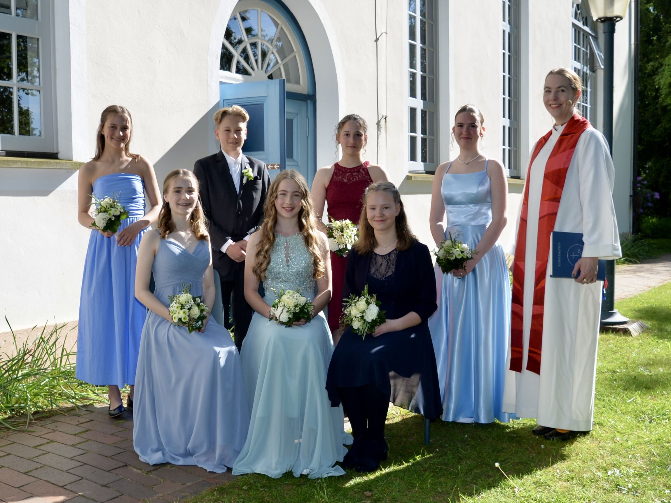 Wie immer treffen sich alle Konfirmanden mit Silke und uns, dem Kirchenvorstand, am Alten Pastorenhaus. Zauberhaft sehen sie aus, mit ihren langen Kleidern und den frisch frisierten Haaren. Elegant, mit Anzug und weißem Hemd. Schon ein klein bisschen erwachsen, aber doch noch ganz schön pubertierend😁