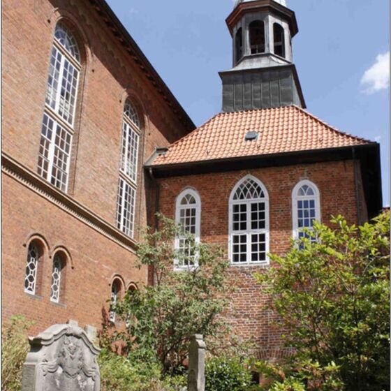 Am Eingang der Klostermauer empfängt uns eine Bewohnerin des Klosters, Frau Rühwald, in einem hellen Sommerkleid; sie ist keine Nonne, sondern eine Konventualin. Mit viel Freude und Kompetenz stellte sie uns die Geschichte, die Bedeutung, und das Leben im Kloster Walsrode vor.