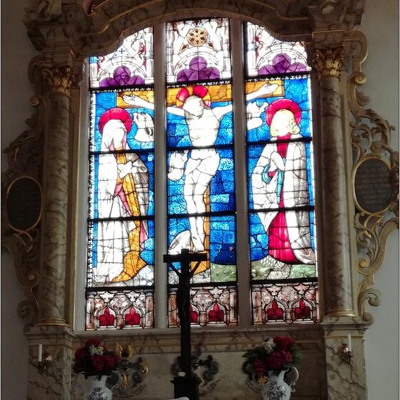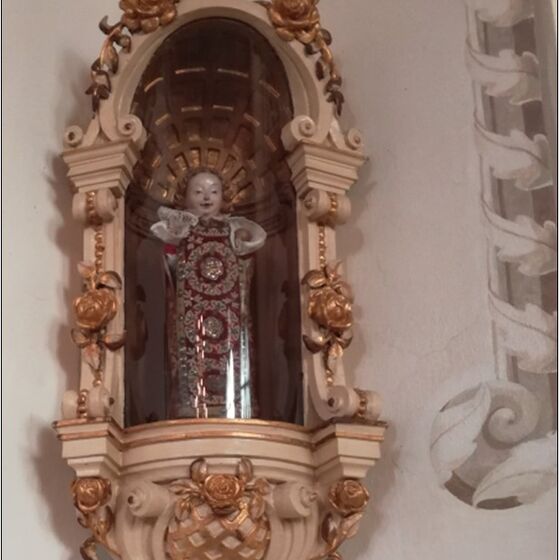 In der Kapelle des Klosters bewundern wir die wunderbaren Glasfenster, das Christus Bambino (s. vorige Seite) und eine ganz alte Holzplastik des letzten Abendmahls.