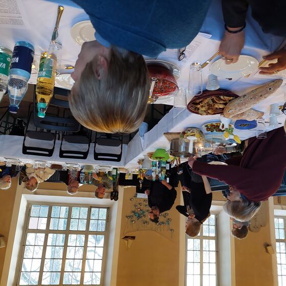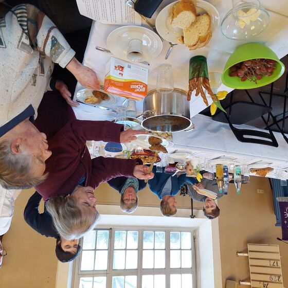 Es ist Gründonnerstag, der 6. April 2023, 19.00 Uhr. Wir sitzen an einem großen wunderbar gedeckten Tisch vor dem Altar in unserer Kirche. Die Kerzen sind an. Viele BesucherInnen haben etwas Leckeres für unser gemeinsames Mahl mitgebracht. Und auch unsere Pastorin hat für uns gekocht und gebacken. Der Tisch ist reich gedeckt.