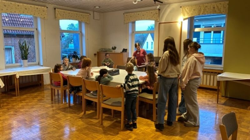 Gesagt, getan! Gemeinsam mit Regionaldiakonin Kerstin Laschat, die auch den Traineekurs angeleitet hatte, wurde ein Programm für 6 Gruppenstunden im Januar / Februar erarbeitet. Dabei ging es von Singen und Spielen über Basteln, einer Kirchenrallye bis hin zu biblischen Geschichten, die erzählt wurden.