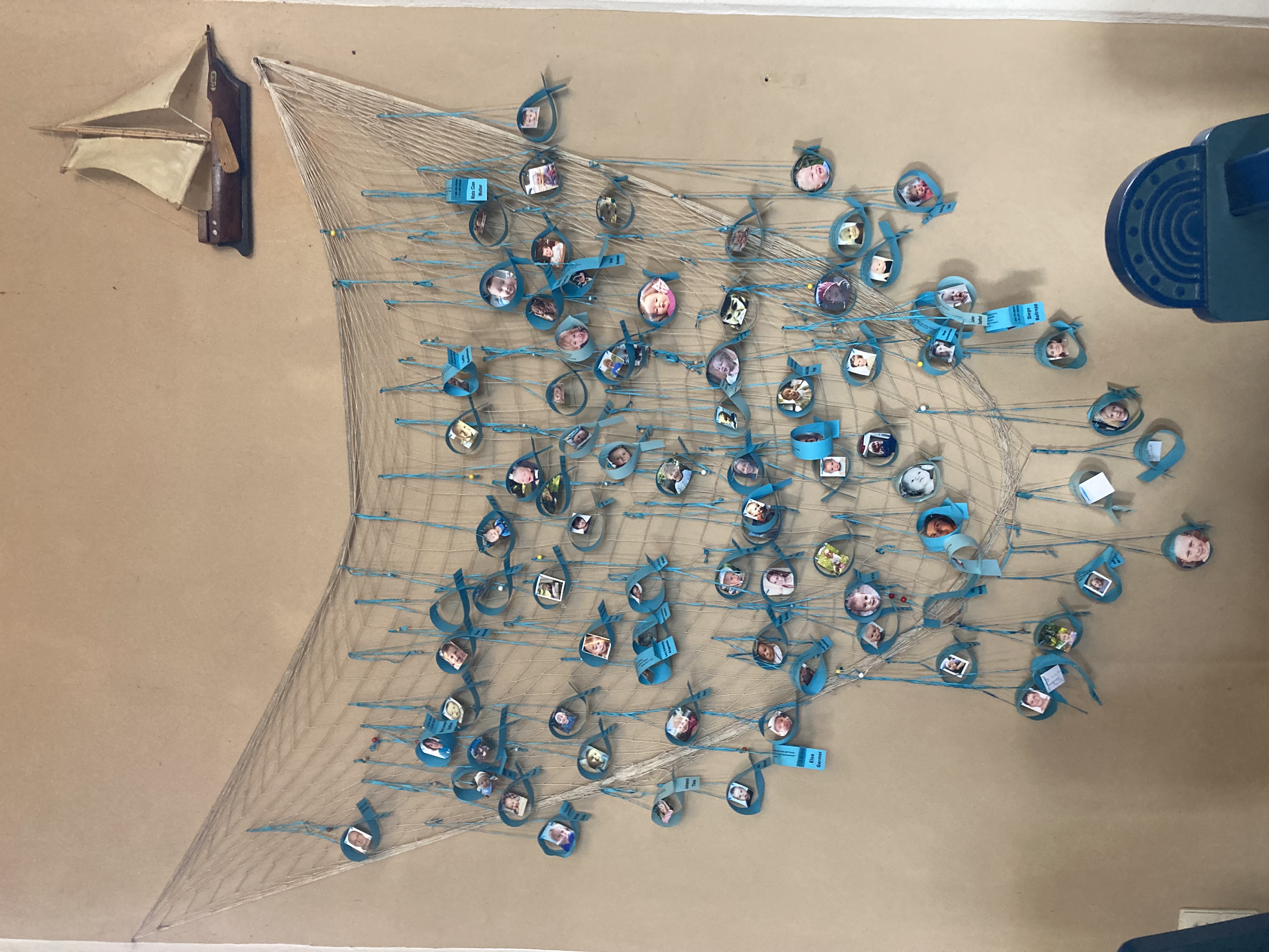 Wir haben für den Gottesdienst mit den Kindern ein kleines Theaterstück vorbereitet. Dieses hieß: „Der Kämmerer aus Äthiopien“ In diesem Stück geht es darum, dass ein Mann aus Äthiopien auf Philippus traf der auf den Weg nach Gaza war. Dort sollte er die Menschen taufen. Dieses erzählte Philippus dem Kämmerer und der Kämmerer fragte ihn, ob er auch getauft werden durfte. Philippus Antwort war darauf, dass jeder Mensch getauft werden kann. Man muss nur daran glauben, dass Jesus der Sohn Gottes ist. Und das glaube der Kämmerer aus Äthiopien. So wurde er von Philippus getauft. Diese Geschichte haben wir mit den Kindern nachgespielt. Angeknüpft an das Thema, haben wir im März eine Projektwoche rund um das Thema „Vielfalt“ gemacht. Wir haben mit den Kindern darüber gesprochen, dass es egal ist, wo die Kinder herkommen, wie sie aussehen und noch vieles mehr. Jedes Kind bei uns im Kindergarten ist herzlich Willkommen. Die Kinder durften ihre eigene Familie nachbauen, sich selbst auf großem Papier malen oder auch ihren Handabdruck gestalten.