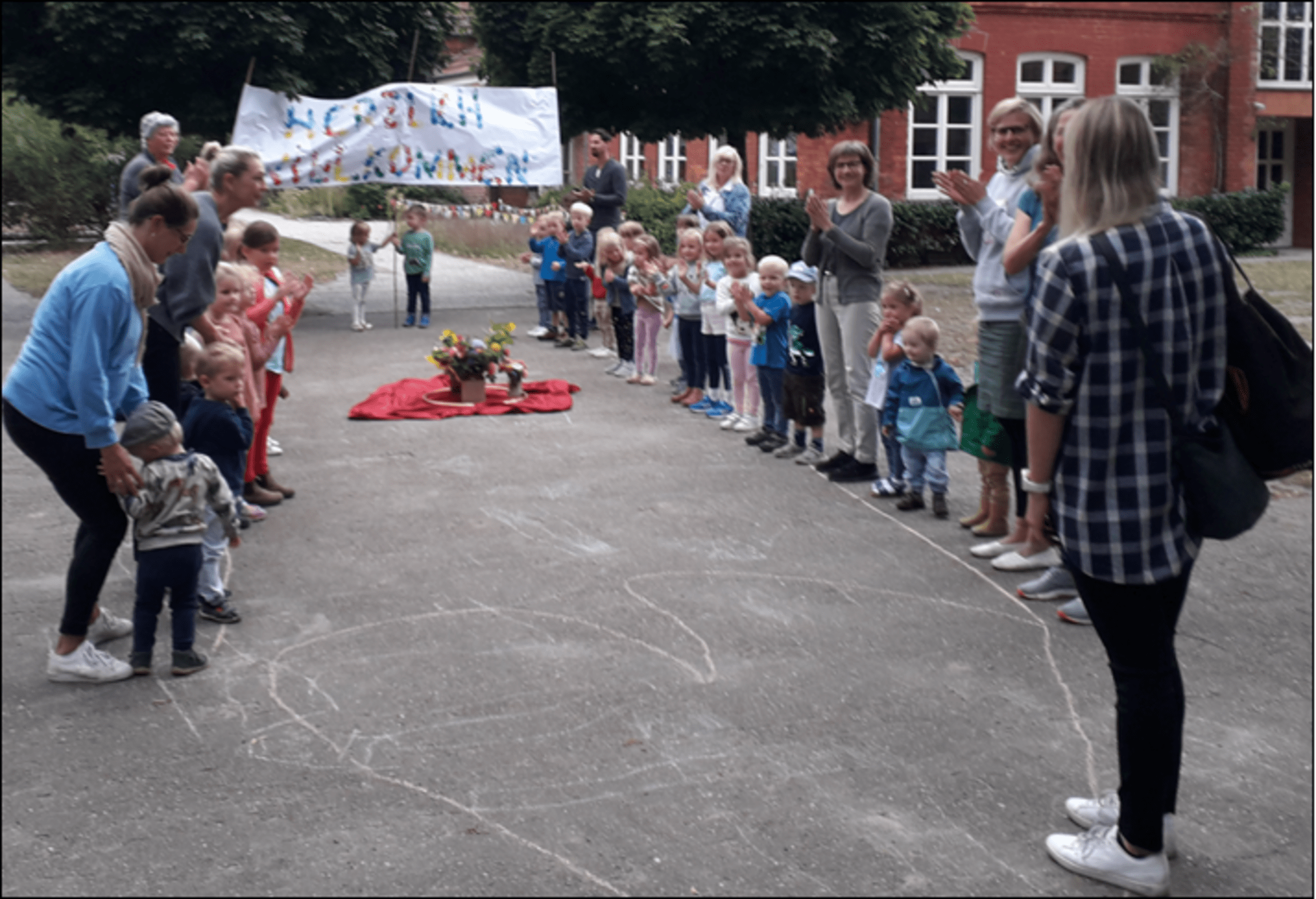 Im Vorfeld haben wir als Team uns Gedanken gemacht, wie wir Frau Busch gemeinsam mit den Kindern einen schönen Empfang zu ihrem ersten Arbeitstag bereiten können.