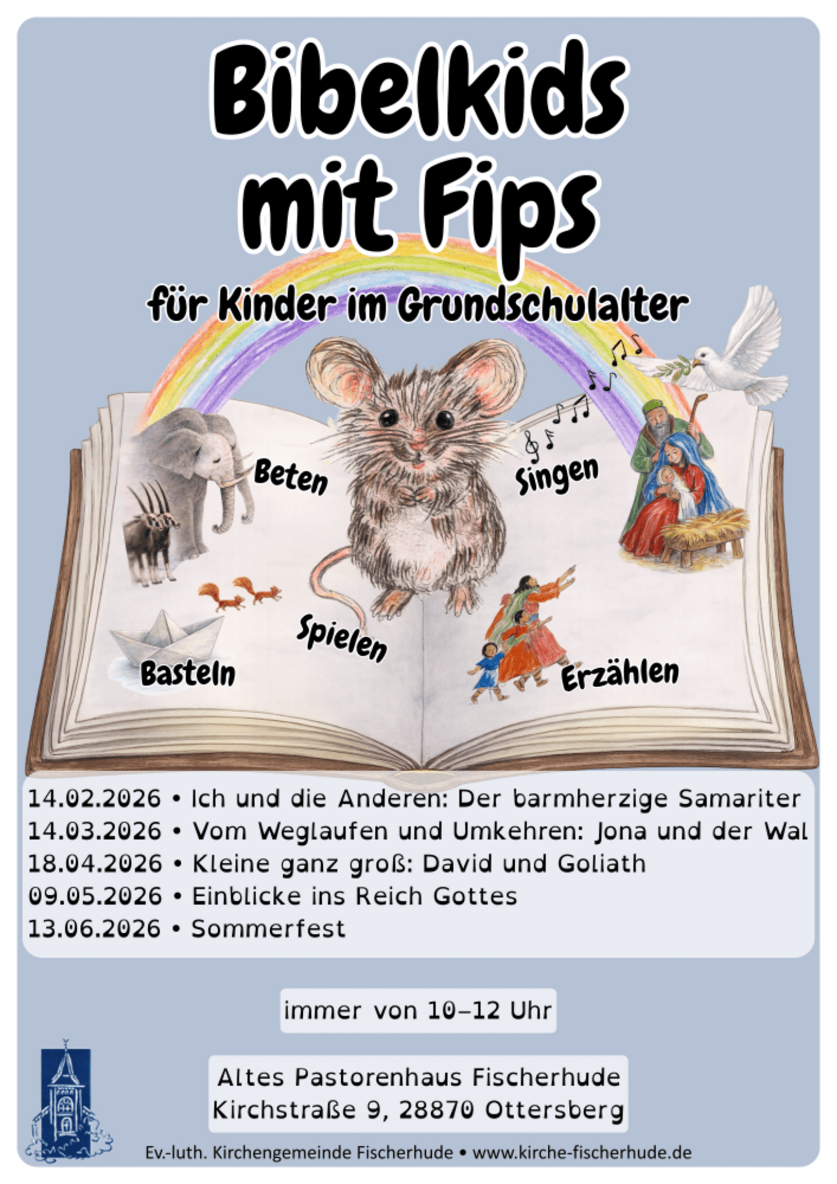 Ein neues Jahr hat begonnen und wir starten mit neuem Elan bei Bibelkids mit Fips. Im letzten Jahr hatten wir viel Spaß beim gemeinsamen Erzählen, dem Hören biblischer Geschichten, beim Basteln, Singen und Spielen.