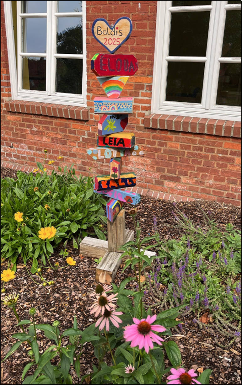 Zum Schluss möchten wir uns noch besonders bei den Baldis bedanken, die wir vor den Ferien abschiedet haben. Sie haben mit ihren Eltern ein schönes Staudenbeet vor Spielhausen angelegt. Diese Stauden blühen wunderschön!