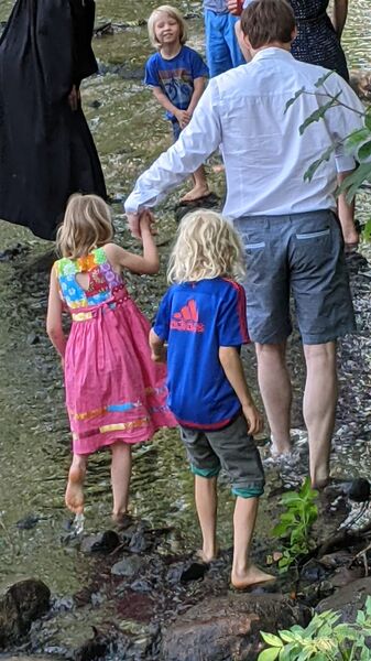 Vielleicht in der Sonne, die für uns so hell schien, vielleicht bei den Enten, die lustig schnatternd das Ganze mit Abstand begutachteten, vielleicht im Rauschen der Wümme, die ihr Bett und Wasser für diese Taufe zur Verfügung stellte.