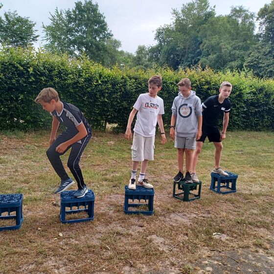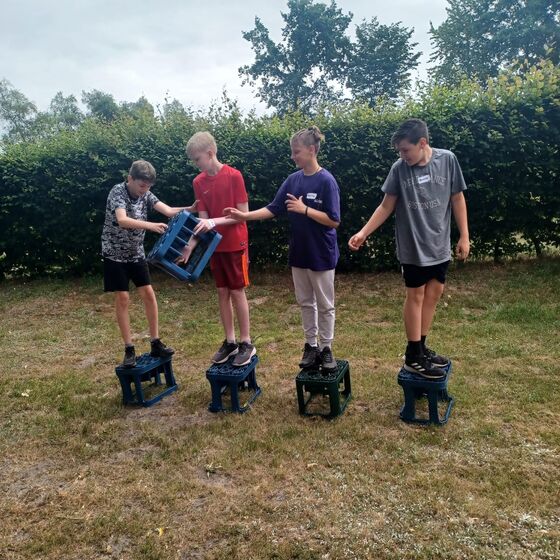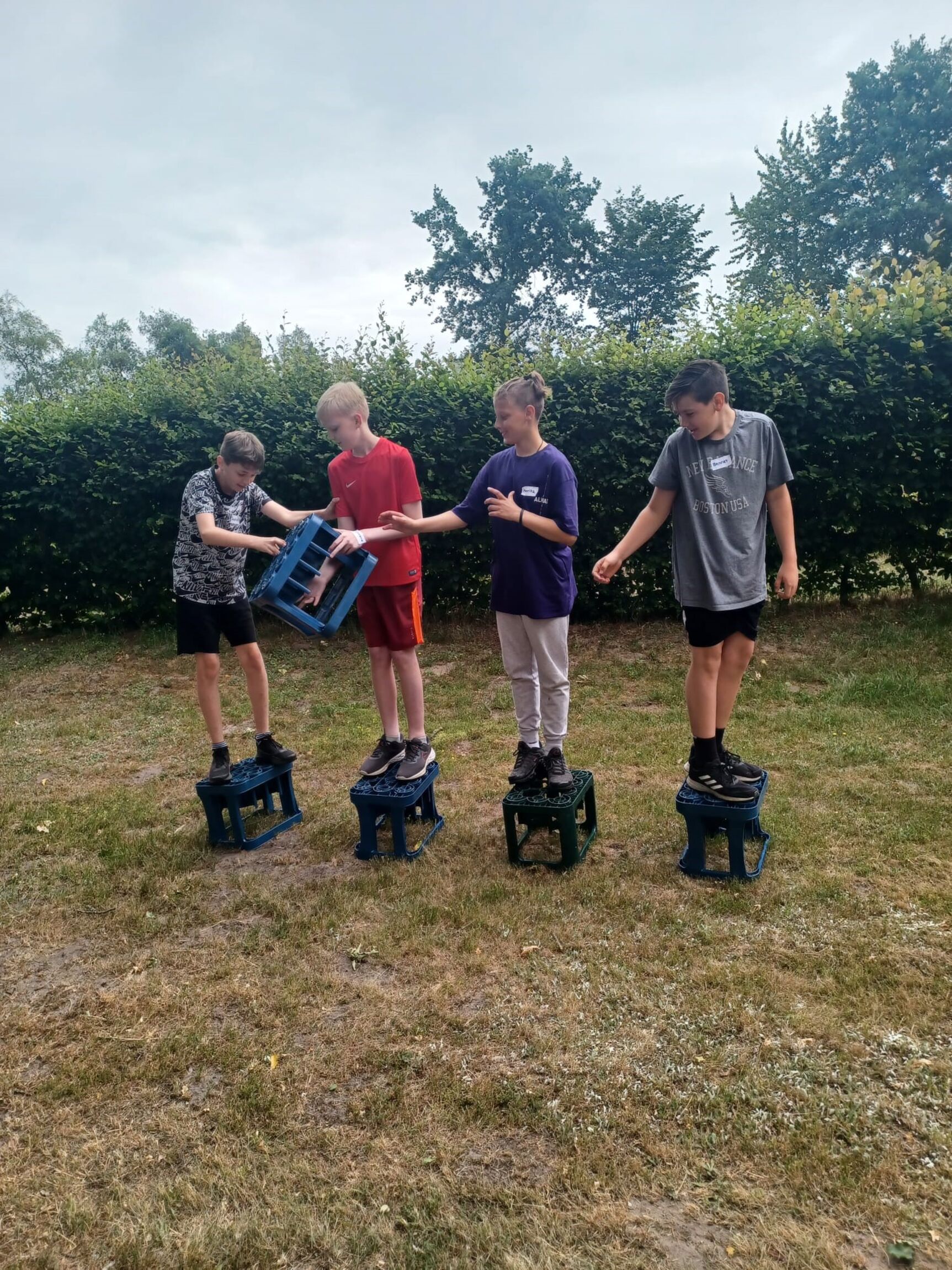 Beim „Kistenlauf“ konnten die Konfis ihr Geschick und ihre Teamfähigkeit unter Beweis stellen. Ihre Ausdauer wurde bei einem „Chaosspiel“ geprüft, wo die Teilnehmer*innen Zahlencodes, die auf dem Gelände versteckt wurden, suchen mussten. Weitere Stationen bestanden unter anderem aus einem „Mini Handtuchtennis Turnier“, einem „Wassertransport mit löchrigen Bechern“ und einer Art „Biathlon inclusive Dosenwerfen“. Aber nicht nur die sportlichen Fähigkeiten waren Teil der Aktion, denn an einer Station sollen die Konfis einschätzen, wie viele 1 Cent Münzen sich in einem Gefäß befinden. Das war gar nicht so einfach - alle Teams lagen mindestens um 1600 Münzen daneben.