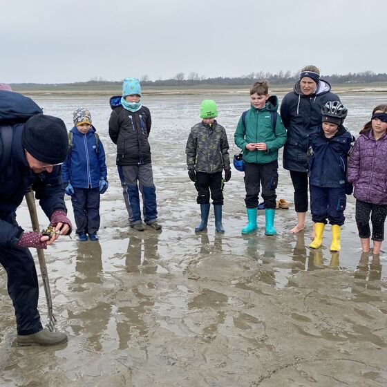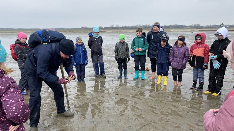 Unsere Wattführerin hat uns viele spannende Sachen gezeigt und erzählt. Wir konnten nur staunen über so viel Leben, das man sonst so ja gar nicht sieht. So vergruben sich u. a. vor unseren Augen Muscheln im Sand. Sogar einen Wattwurm konnten wir bestaunen.