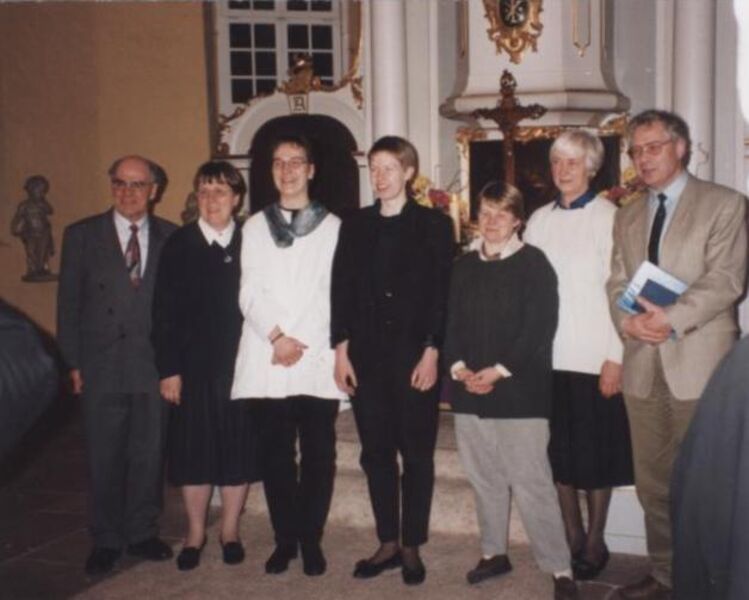 Eine Gruppe mit Superintendent Fulko Steinhausen und Mitgliedern aus dem Partnerschaftsausschuss bereitet den Gottesdienst vor.